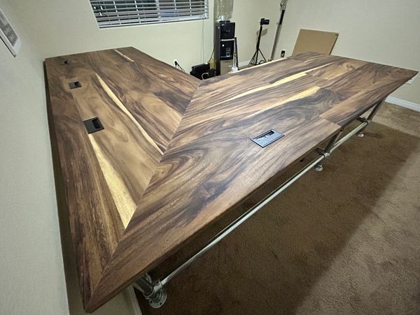 Our solid wood desks are custom-made to suit your preferences. We offer a wide range of wood species and style elements to match your personal taste. Be sure to visit our design style page to explore the different styles available, whether you prefer a sleek, straight edge or the rustic charm of a live edge design. We can accommodate any look you're aiming for.
