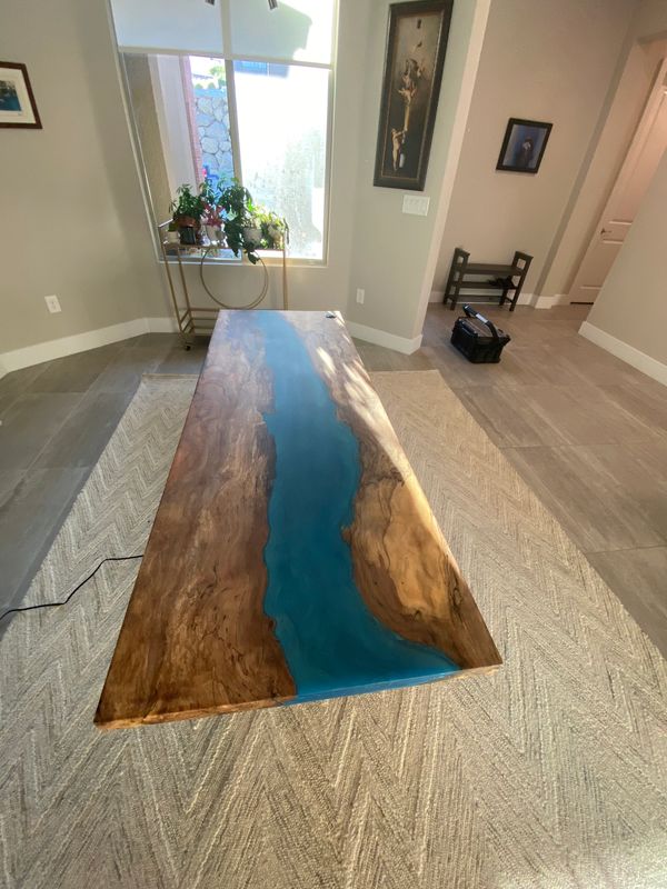 67x192” spalted maple conference table with Royal blue epoxy to Sierra Air Conditioning and Plumbing .